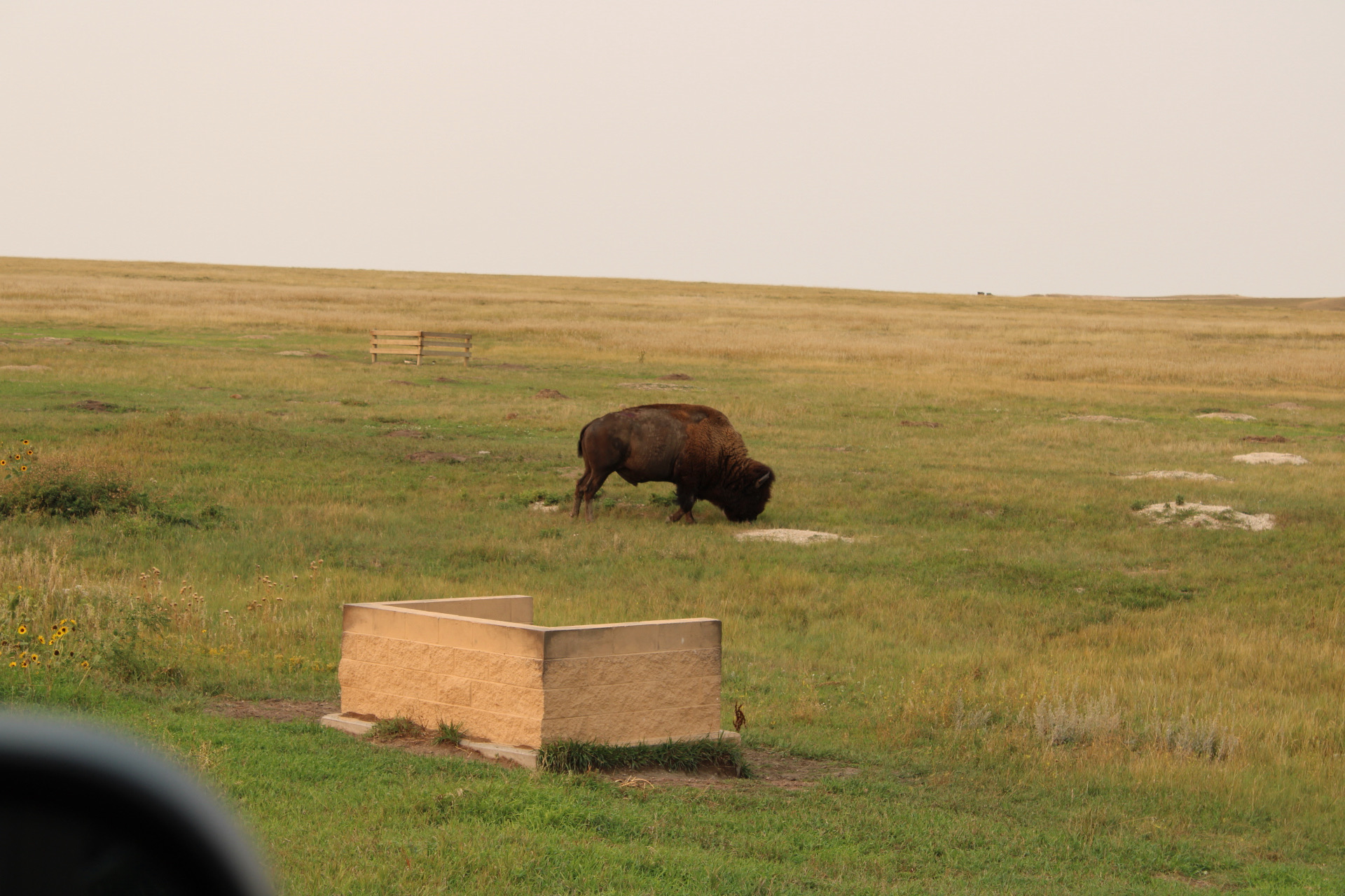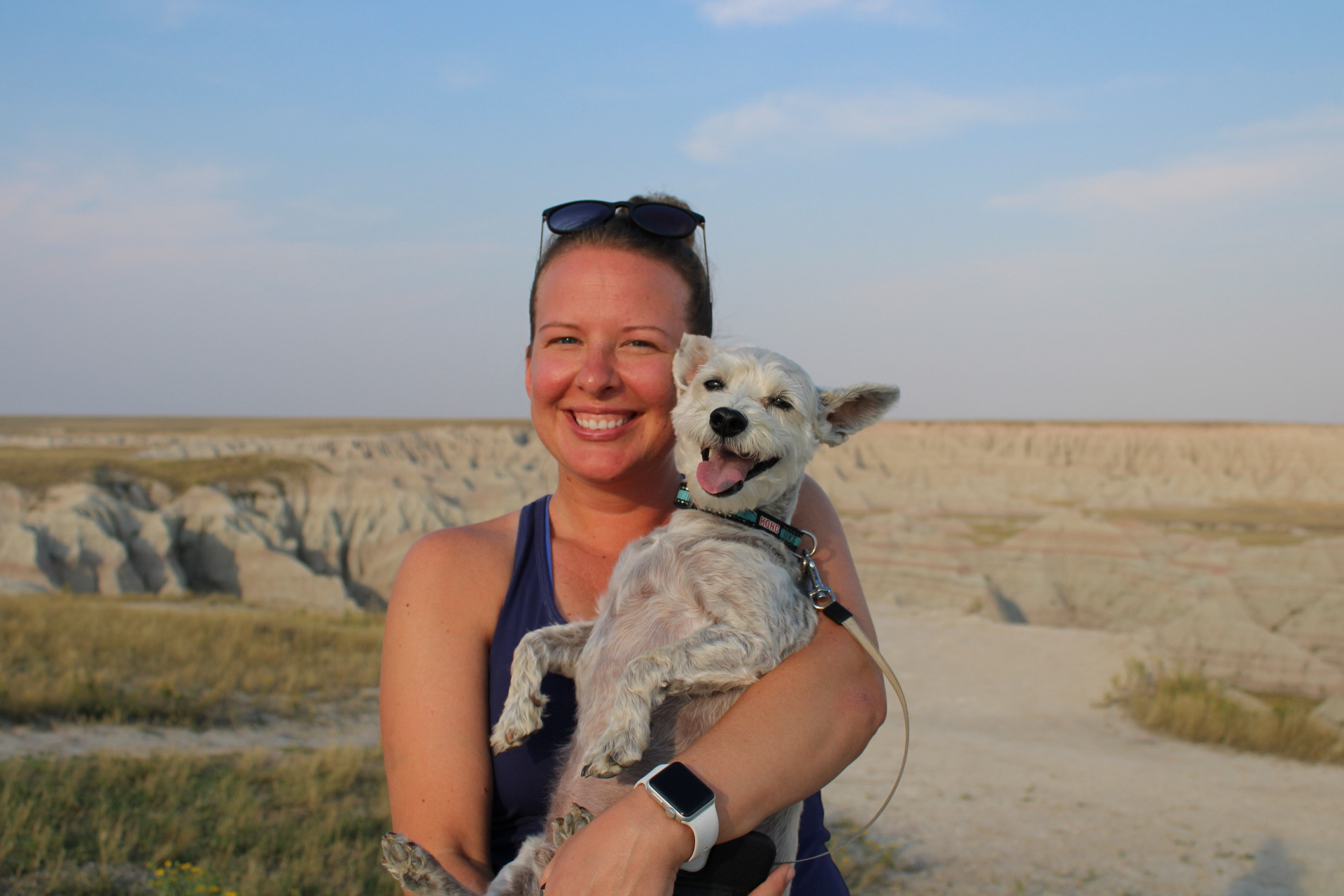 The Badlands Loop Road is one of two main roads that go directly through the park. It’s about 38 miles to drive straight through, but there are also many overlooks, pull-offs, and hiking trails along the way. Like in most national parks, dogs are only permitted in certain areas, so since we have Harvey with us, we didn’t go on any of the trail hikes and instead stuck to the scenic drive.
